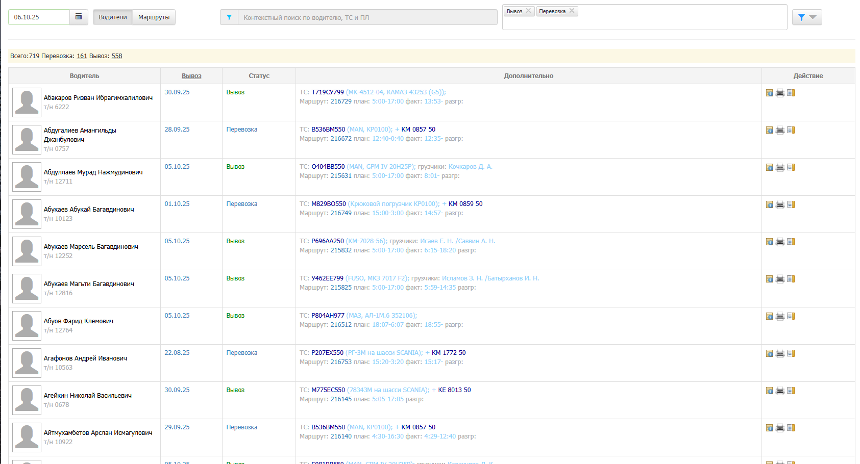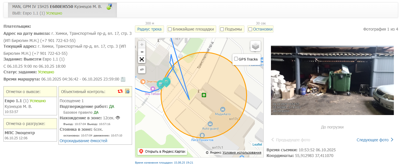 - Учет фактов исполнения вывоза с использованием фотофиксации;