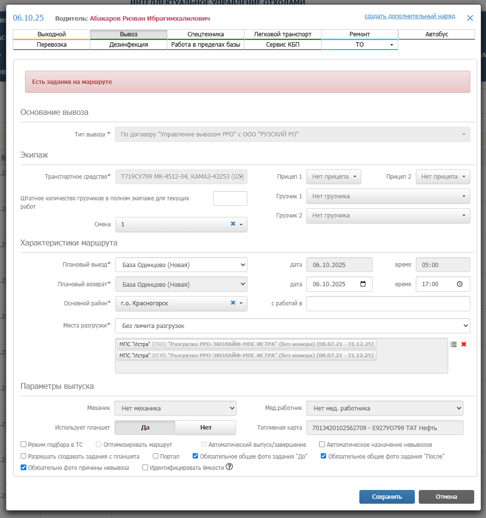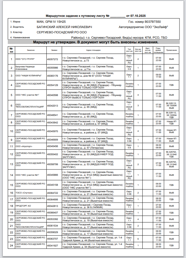 - сервис автоматизации планирования вывоза отходов (создание маршрутных и путевых листов);
